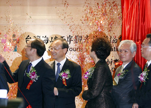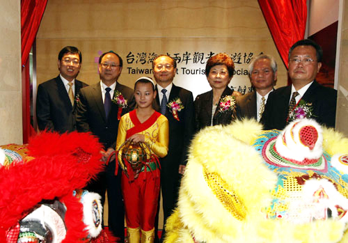 海峡两岸旅游交流协会会长邵琪伟、台湾海峡两岸观光旅游协会会长赖瑟珍出席仪式并致辞。海峡两岸关系协会常务副会长郑立中到场祝贺。张宇摄