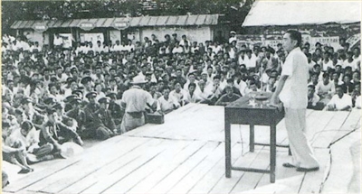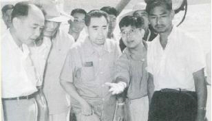 一九五八年七月,周恩来总理会见抢险的大桥局员工并发表重要讲话。