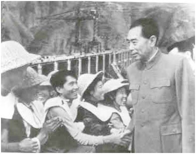 1958年4月21日,周恩来视察三门峡工程时与工人亲切交谈。